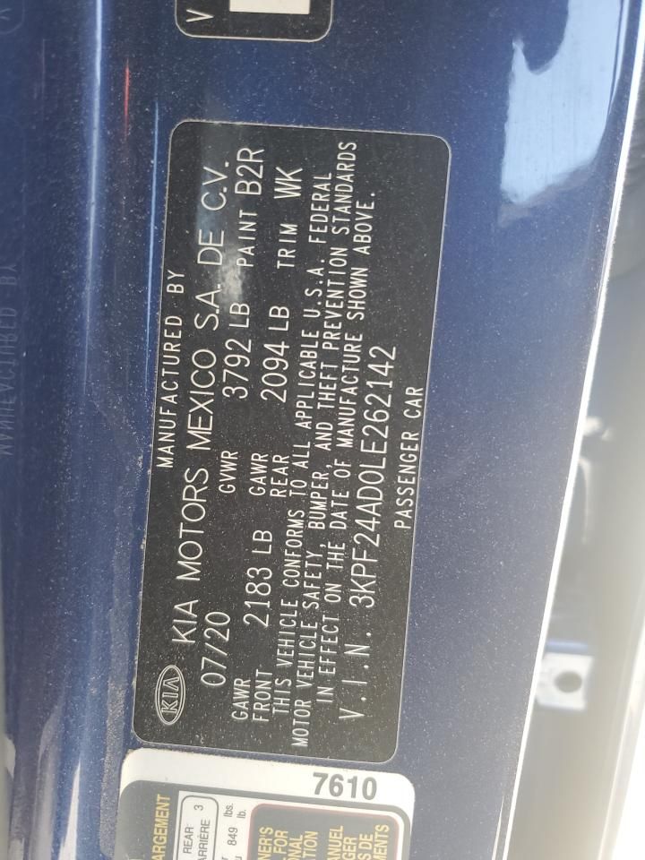 VIN Code Research: Use the VIN number to uncover the history of this 2020 KIA Forte FE.