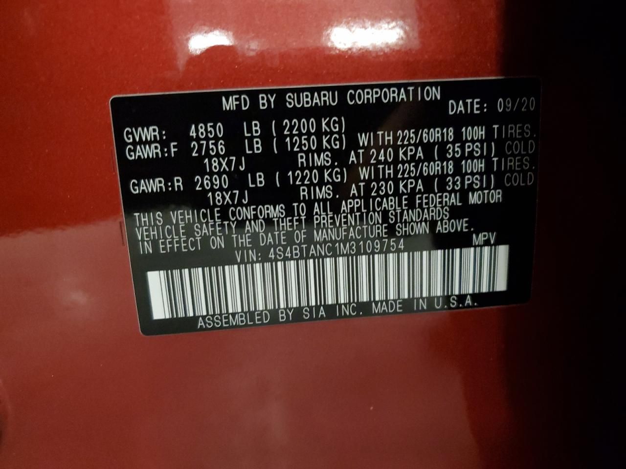 VIN Code Research: Use the VIN number to uncover the history of this 2021 Subaru Outback Limited.