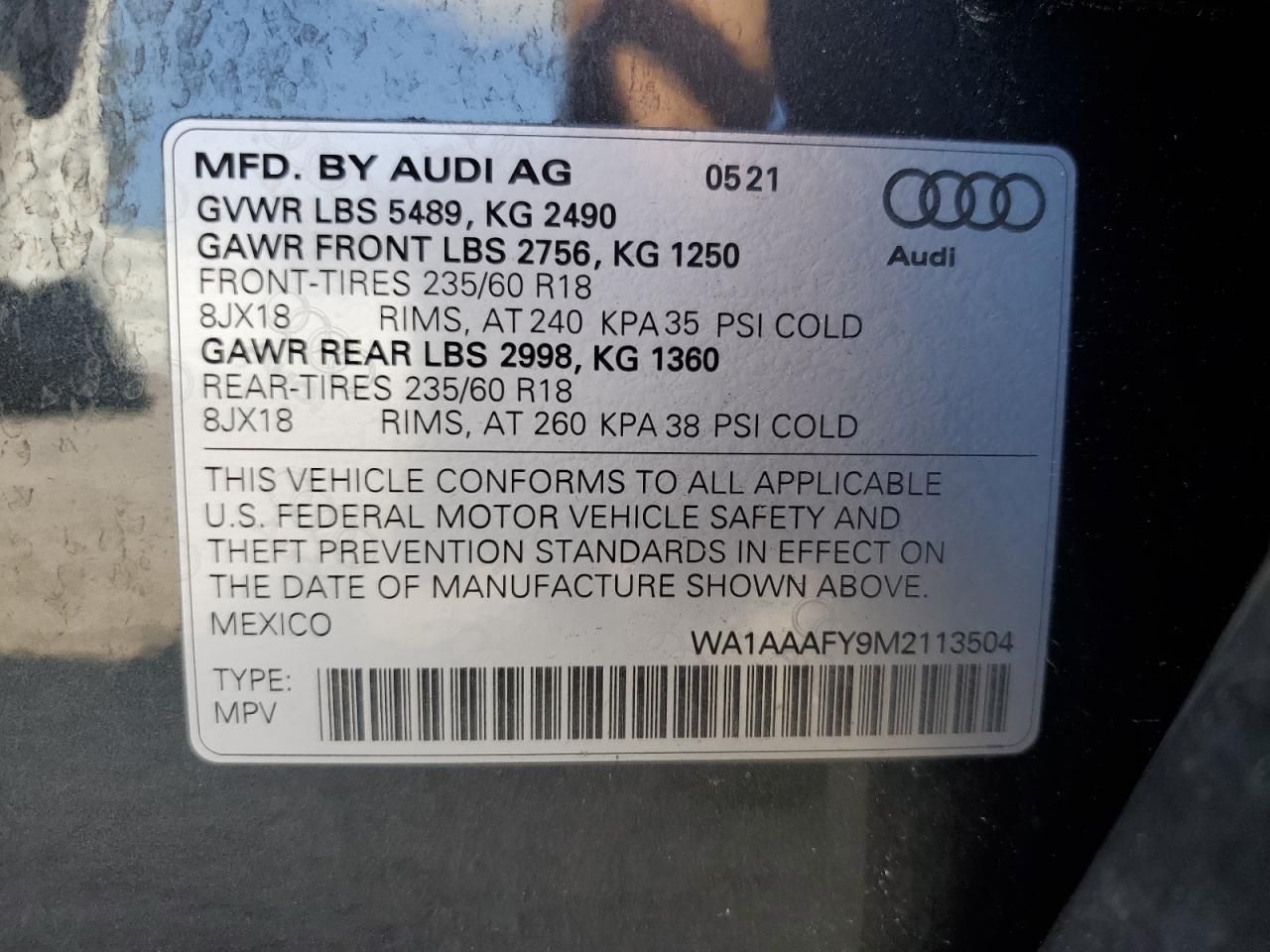 VIN Code Research: Use the VIN number to uncover the history of this 2021 Audi Q5 Premium.