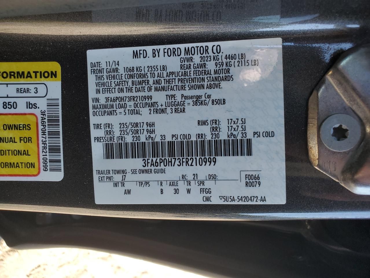 VIN Code Research: Use the VIN number to uncover the history of this 2015 Ford Fusion SE.