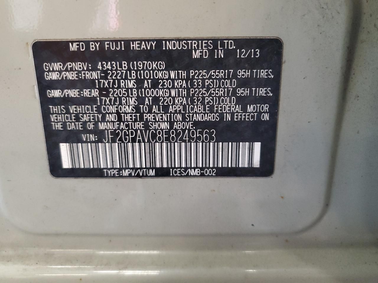 VIN Code Research: Use the VIN number to uncover the history of this 2014 Subaru XV Crosstrek 2.0 Premium.
