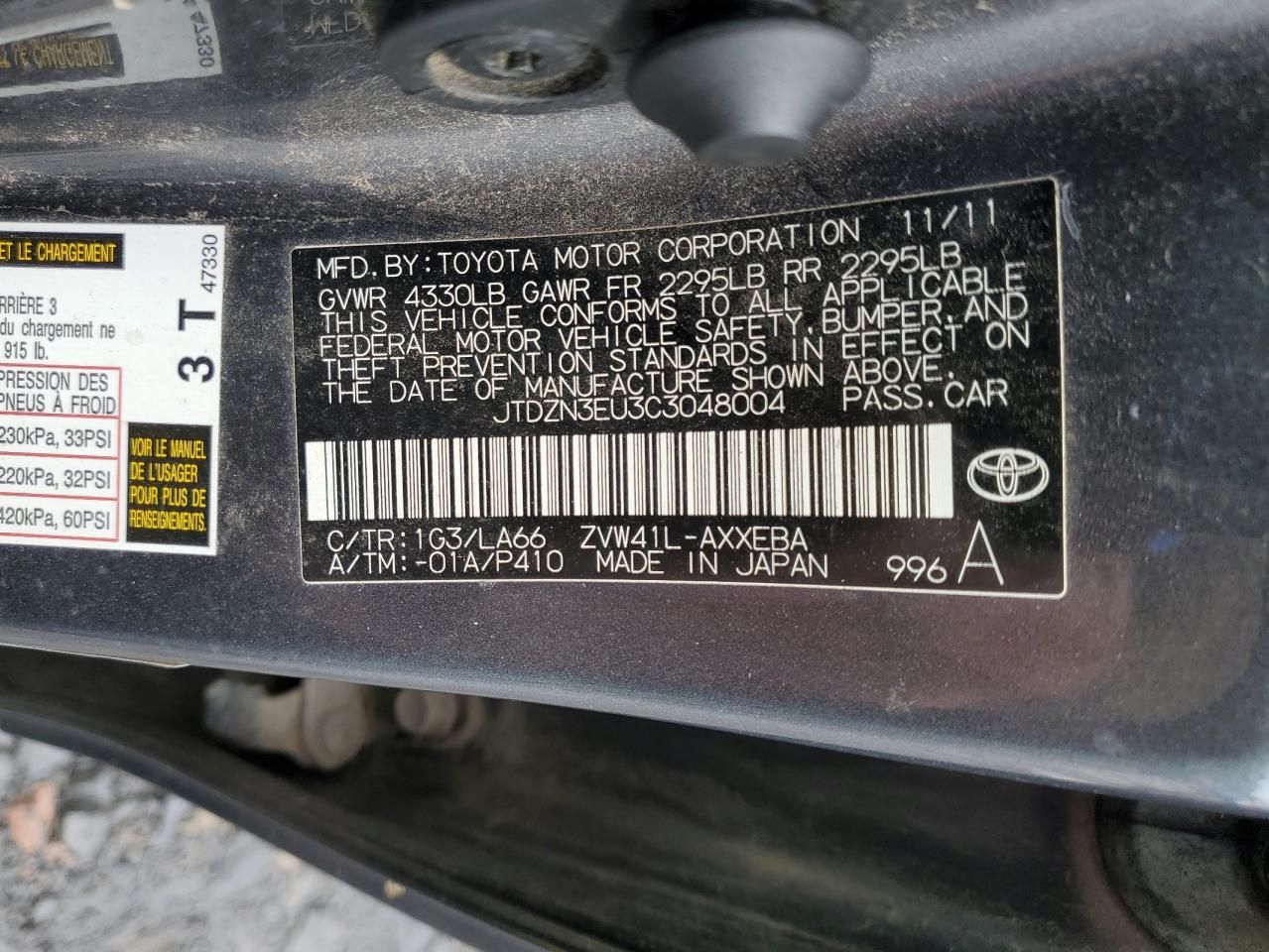 VIN Code Research: Use the VIN number to uncover the history of this 2012 Toyota Prius V.