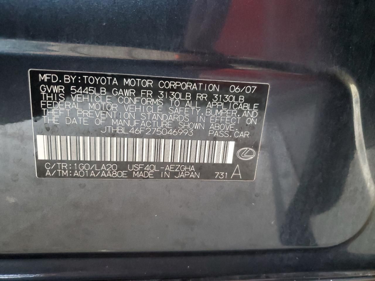 VIN Code Research: Use the VIN number to uncover the history of this 2007 Lexus LS 460.