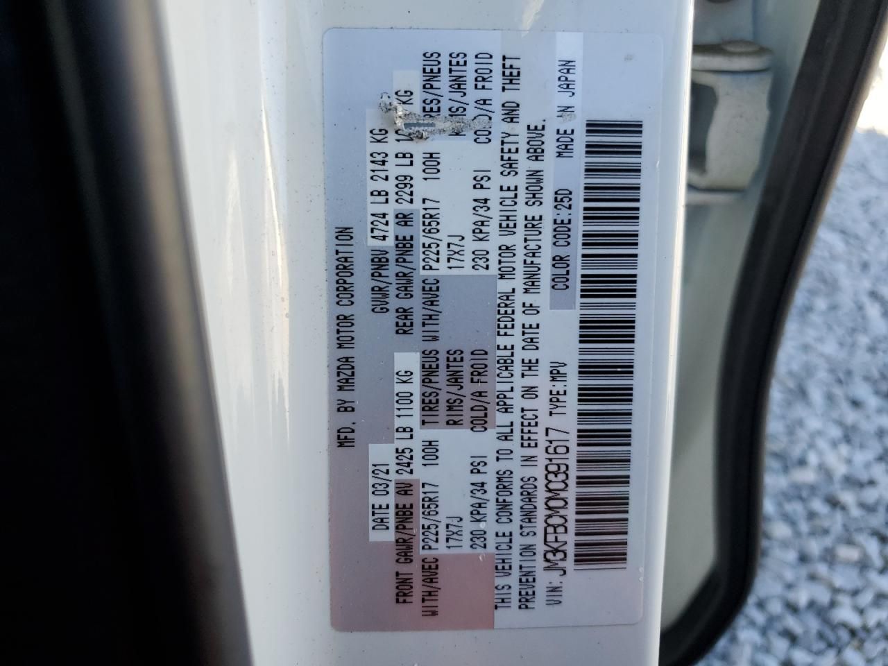 VIN Code Research: Use the VIN number to uncover the history of this 2021 Mazda CX-5 Touring.