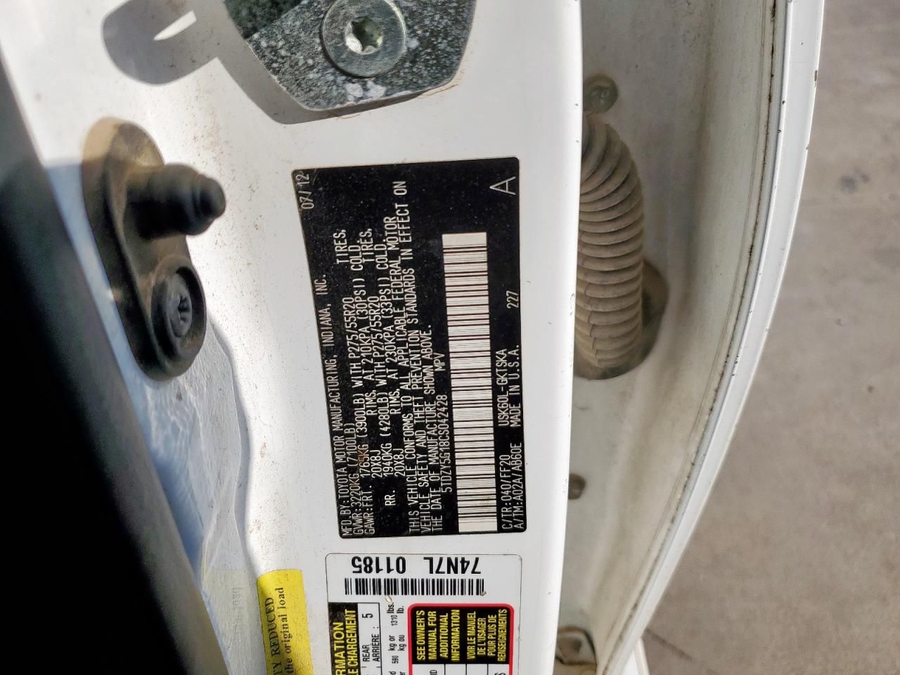 VIN Code Research: Use the VIN number to uncover the history of this 2012 Toyota Sequoia SR5.