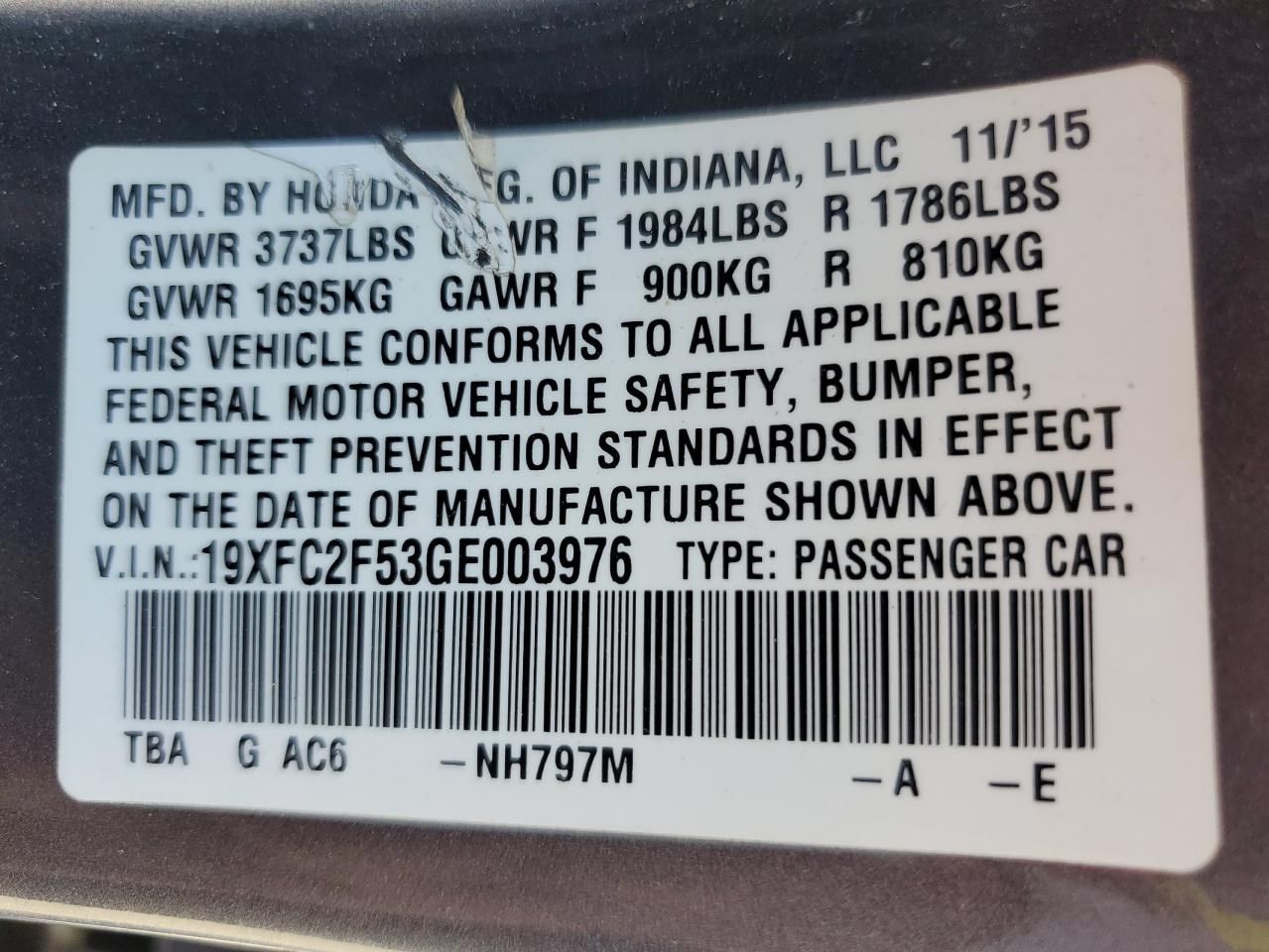 VIN Code Research: Use the VIN number to uncover the history of this 2016 Honda Civic LX.