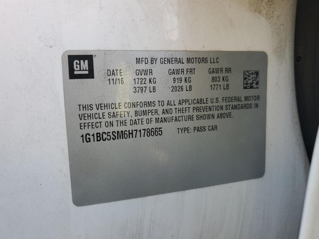VIN Code Research: Use the VIN number to uncover the history of this 2017 Chevrolet Cruze LS.