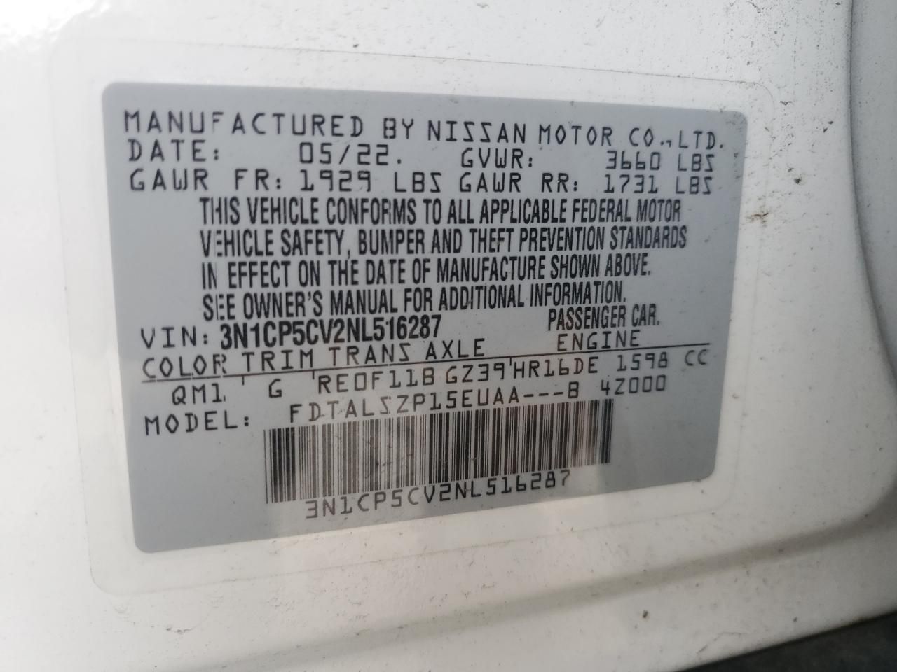 • Investigación del Código VIN: Usa el número VIN para descubrir el historial de este 2022 Nissan Kicks SV.