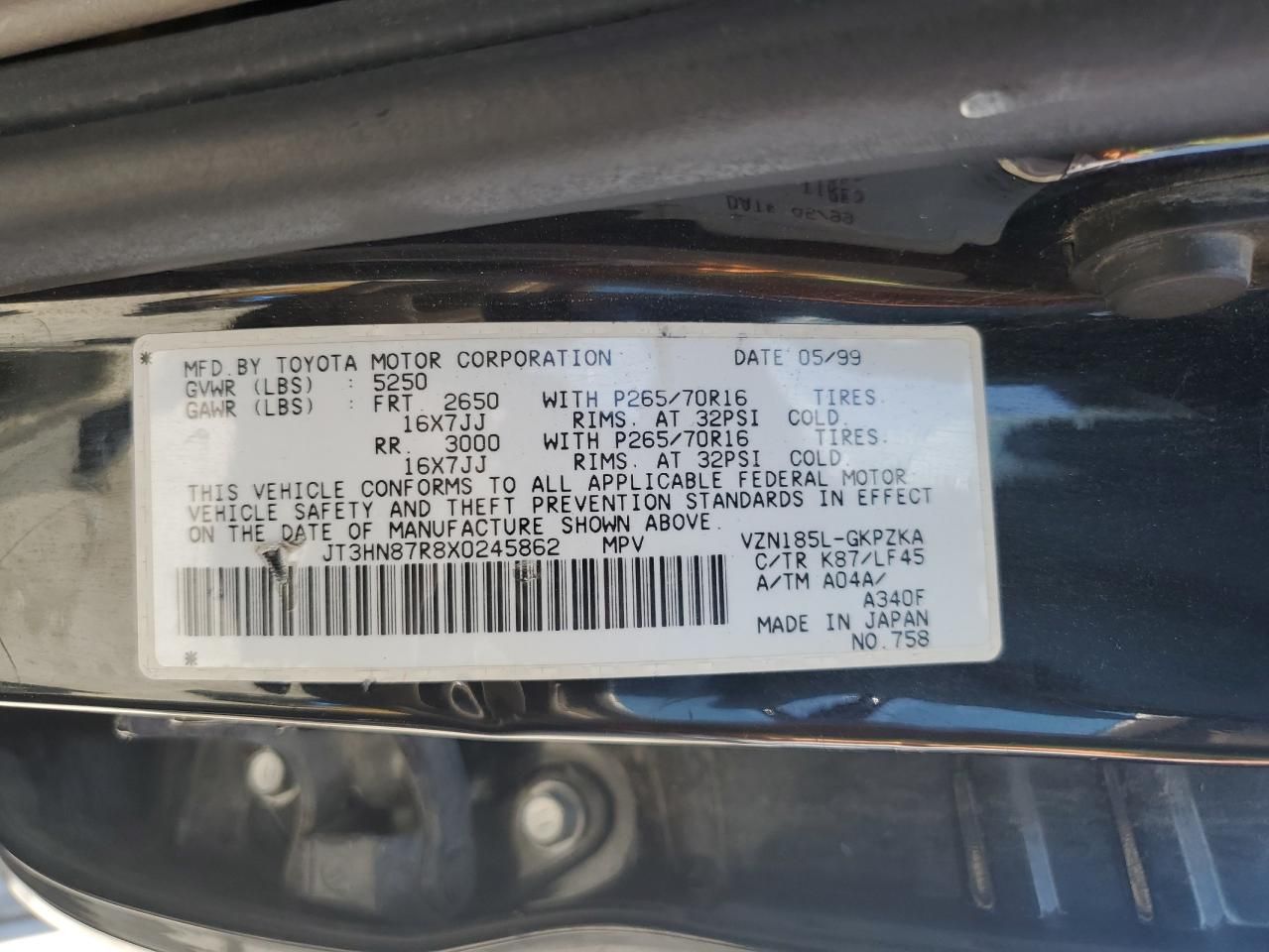 • Investigación del Código VIN: Usa el número VIN para descubrir el historial de este 1999 Toyota 4runner Limited.