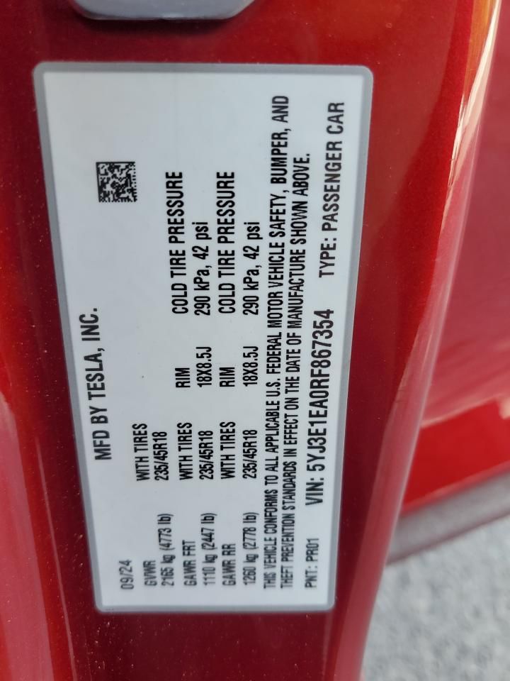Mas sobre este 2024 Tesla Model 3, Lot #61471605