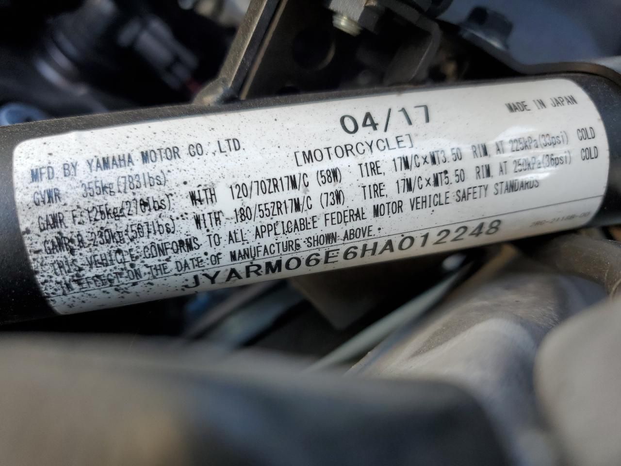• Investigación del Código VIN: Usa el número VIN para descubrir el historial de este 2017 Yamaha FZ07.