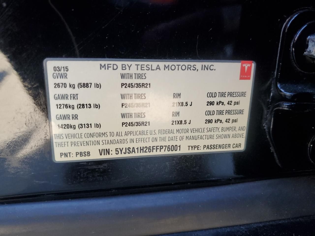 • Investigación del Código VIN: Usa el número VIN para descubrir el historial de este 2015 Tesla Model S 85D.