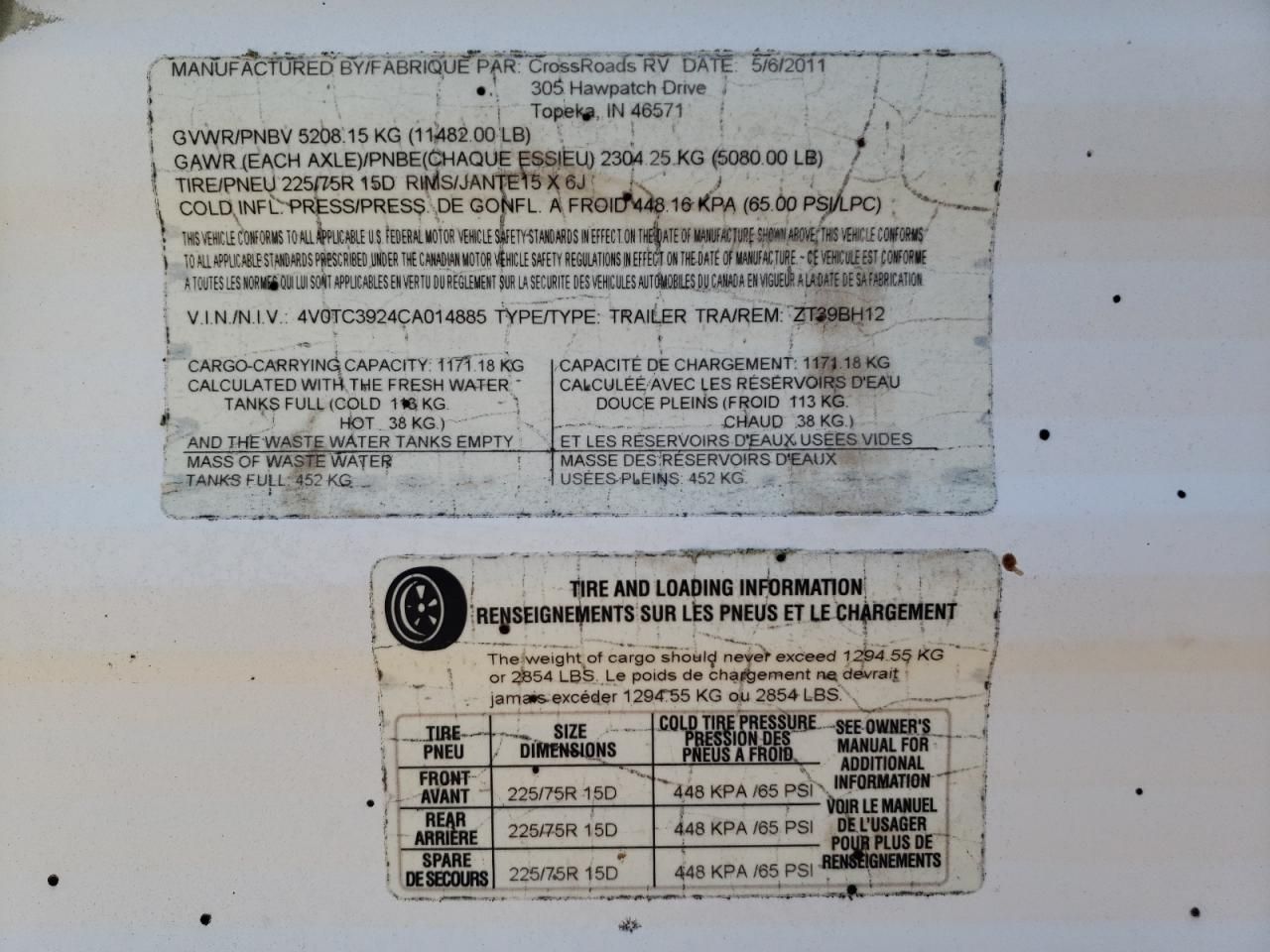• Investigación del Código VIN: Usa el número VIN para descubrir el historial de este 2012 Crossroads Zinger.