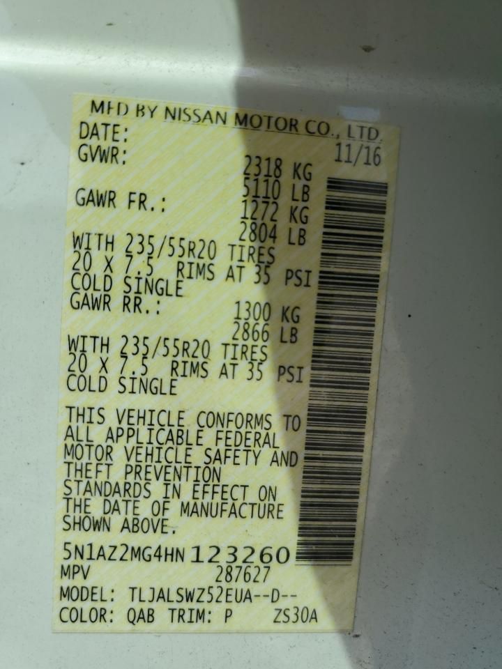 Mas sobre este 2017 Nissan Murano S, Lot #70687995