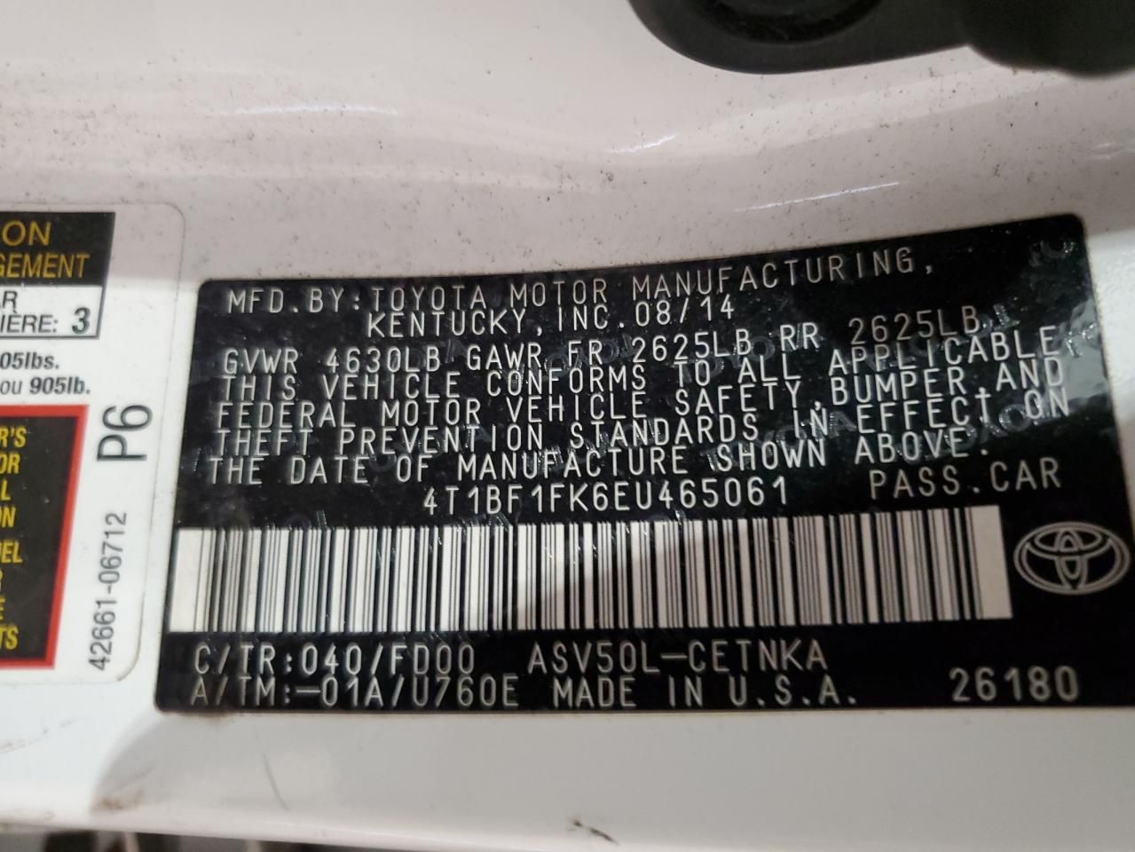 Mas sobre este 2014 Toyota Camry L, Lot #70785455