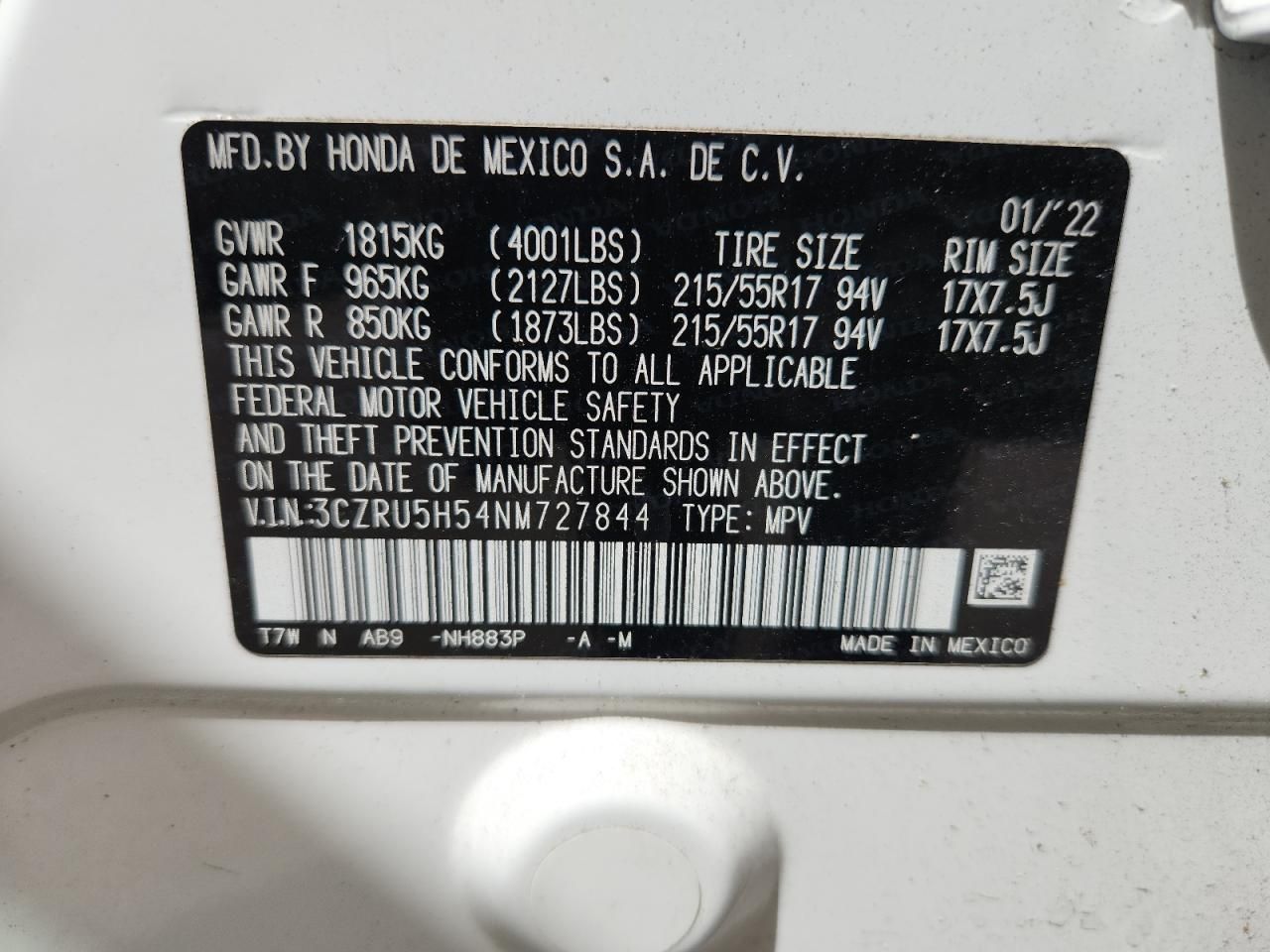Mas sobre este 2022 Honda HR-V EX, Lot #71218225