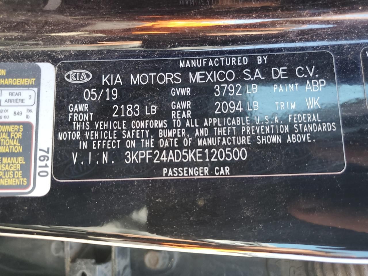 • Investigación del Código VIN: Usa el número VIN para descubrir el historial de este 2019 KIA Forte FE.