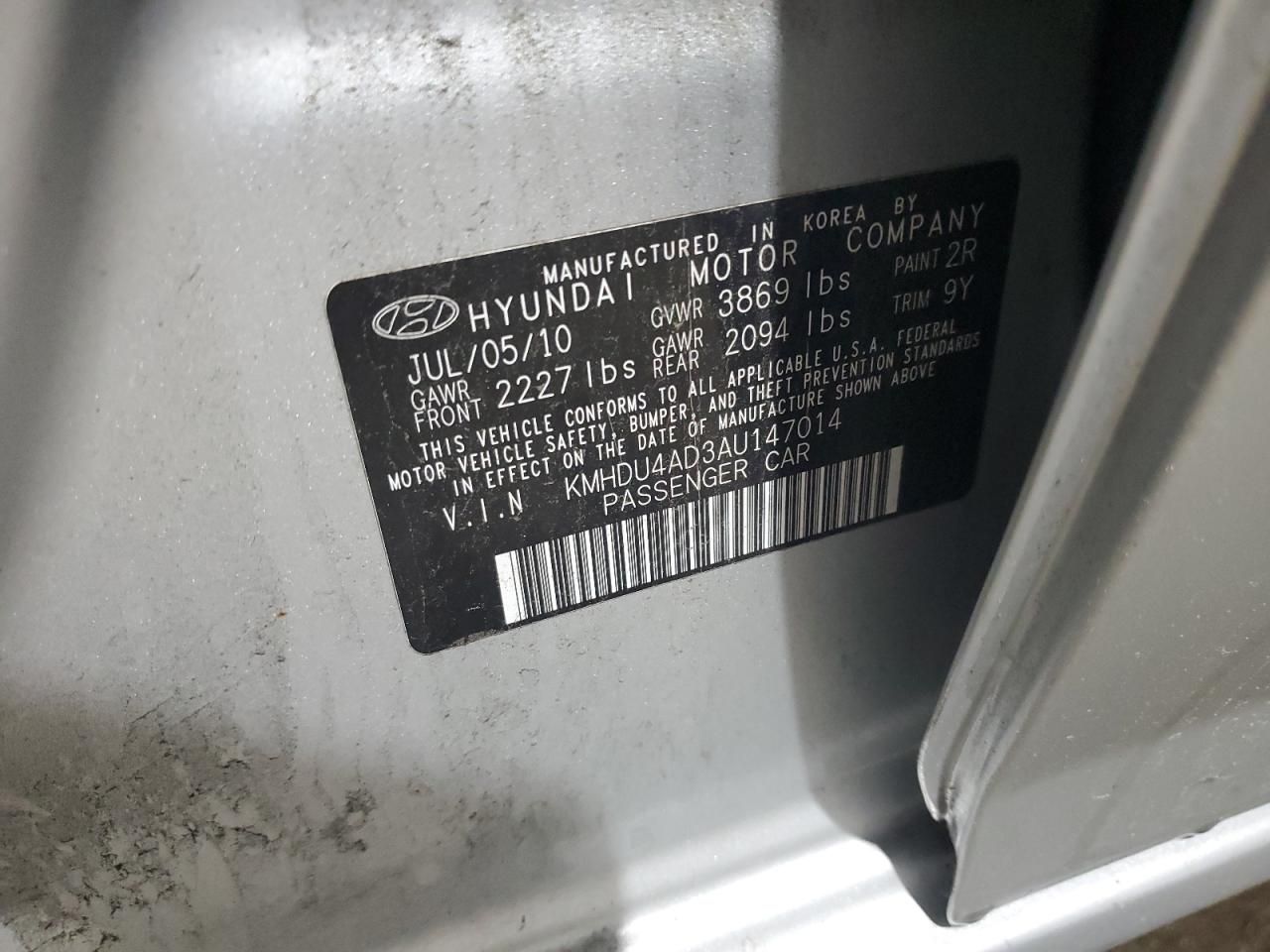 Mas sobre este 2010 Hyundai Elantra Blue, Lot #72044945