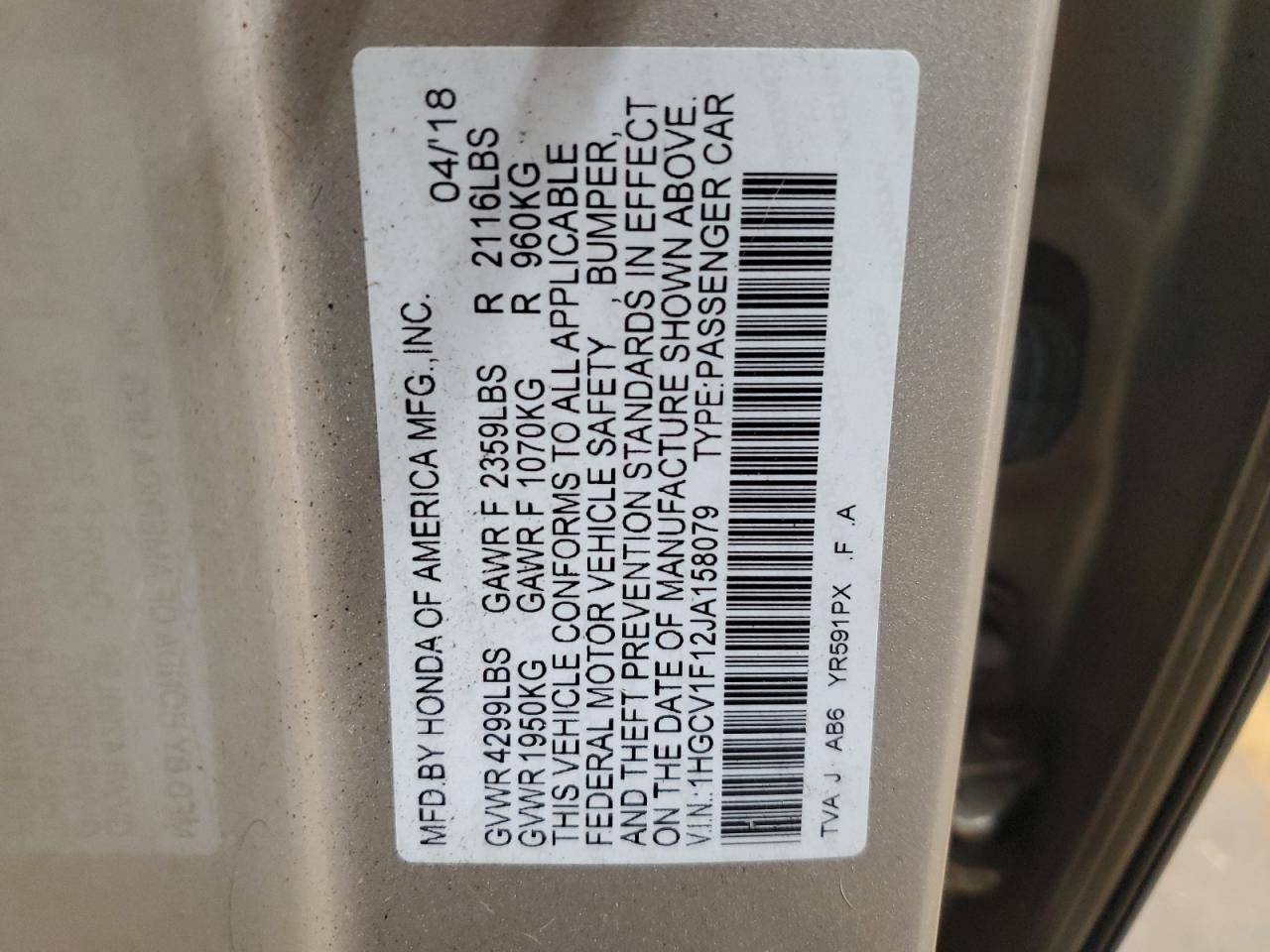 Mas sobre este 2018 Honda Accord LX, Lot #80091135