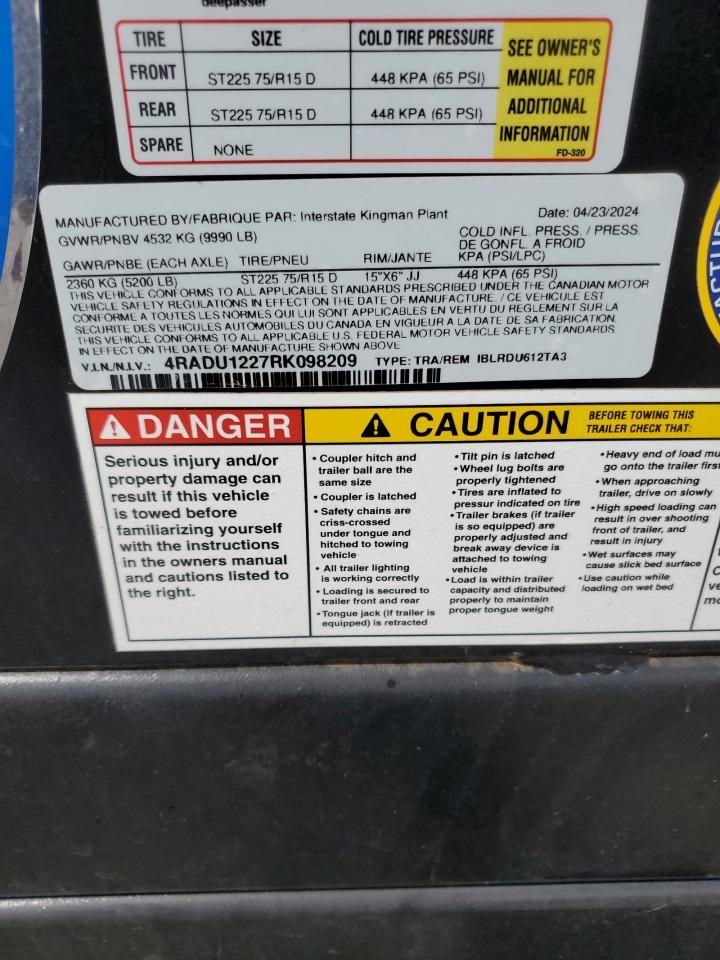 • Investigación del Código VIN: Usa el número VIN para descubrir el historial de este 2024 Interstate IBLRDU612TA3 Dump Trailer.