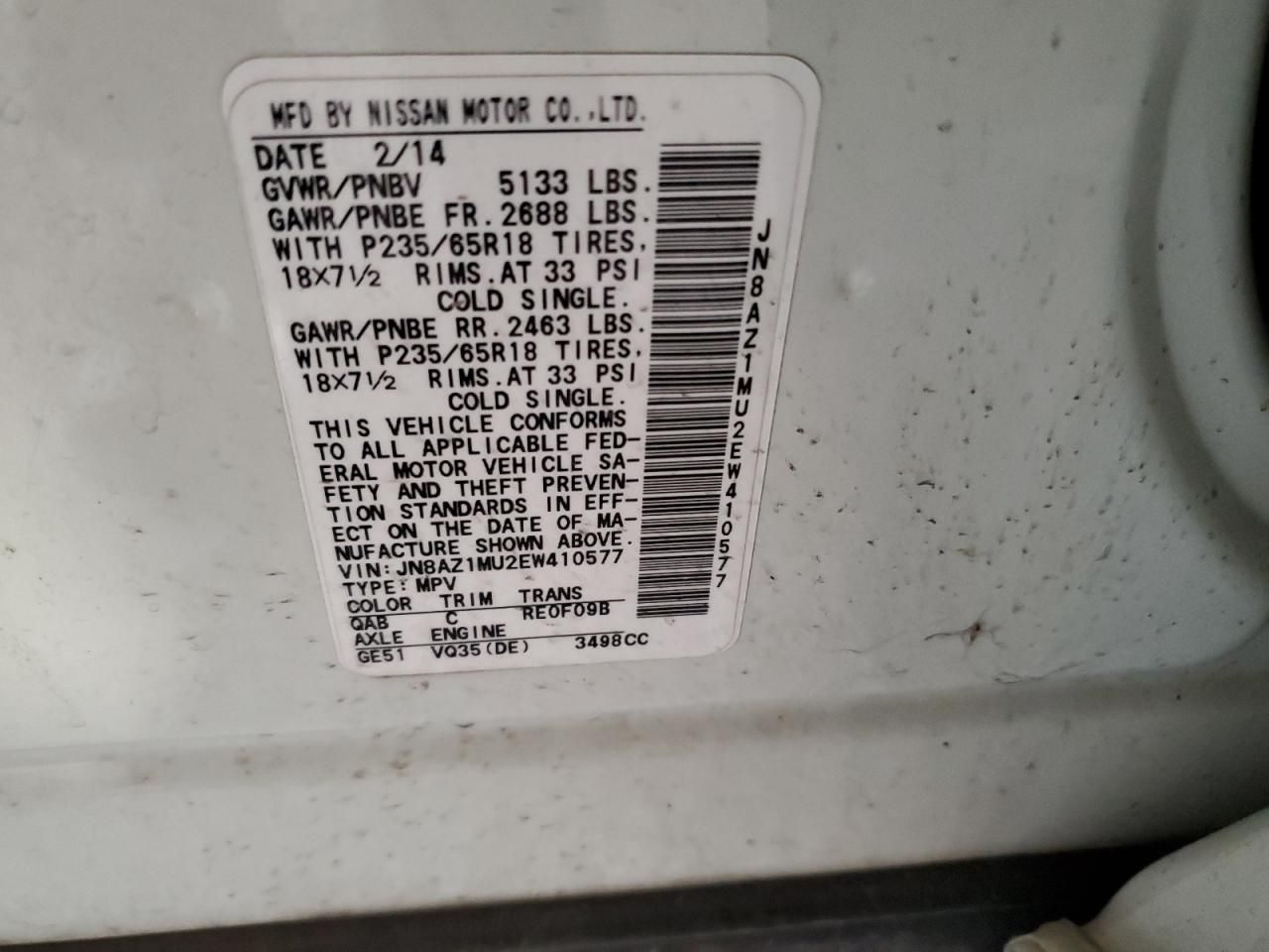 • Investigación del Código VIN: Usa el número VIN para descubrir el historial de este 2014 Nissan Murano S.