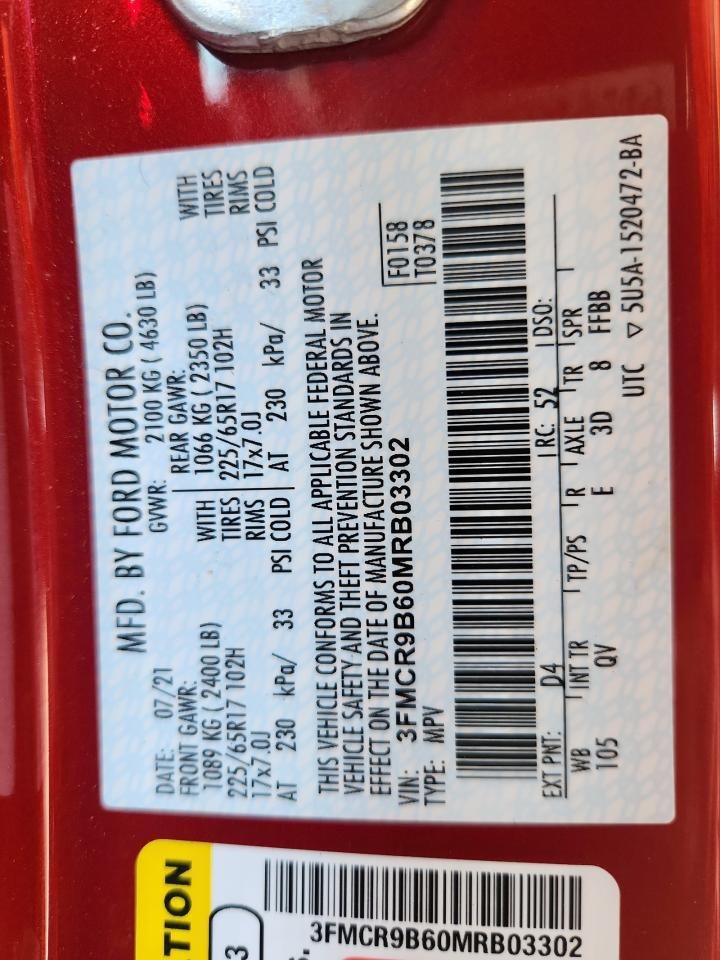 • Investigación del Código VIN: Usa el número VIN para descubrir el historial de este 2021 Ford Bronco Sport BIG Bend.