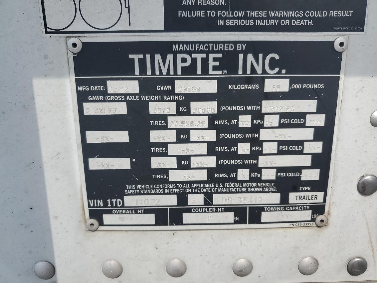 • Investigación del Código VIN: Usa el número VIN para descubrir el historial de este 2013 Timpte Hopper.