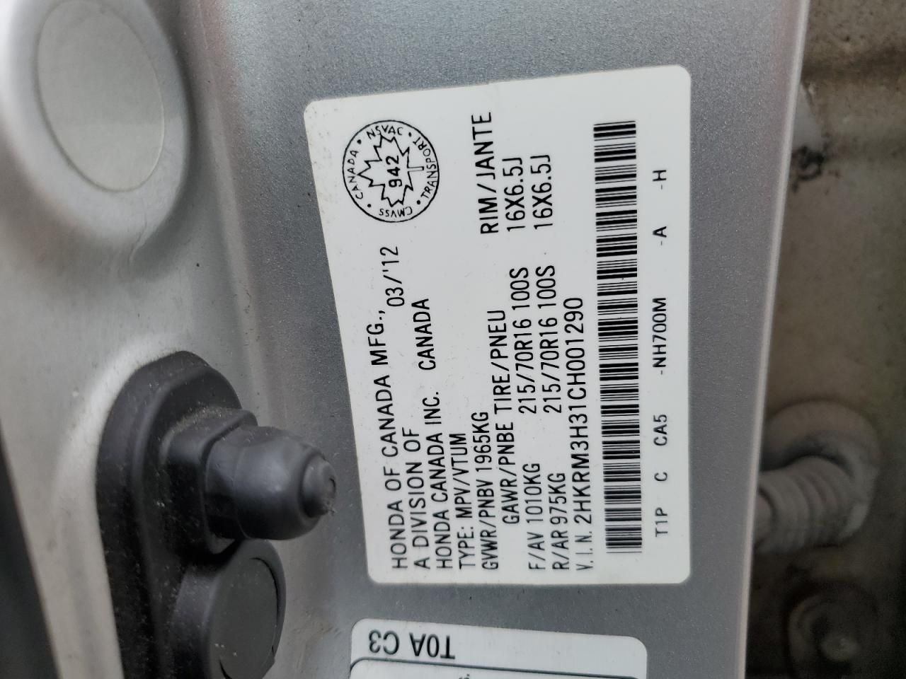Mas sobre este 2012 Honda CR-V LX, Lot #85512645