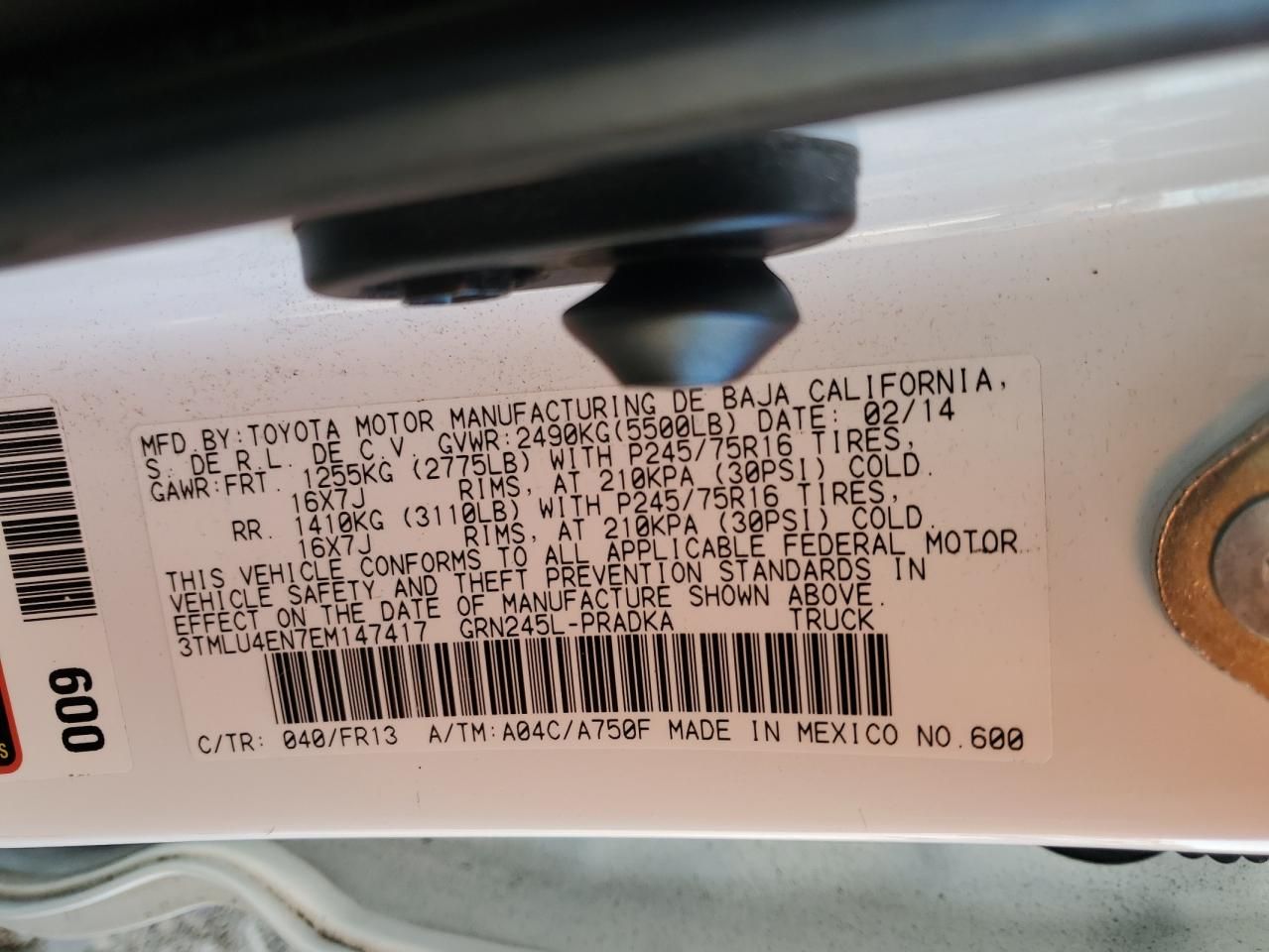 • Investigación del Código VIN: Usa el número VIN para descubrir el historial de este 2014 Toyota Tacoma Double Cab.