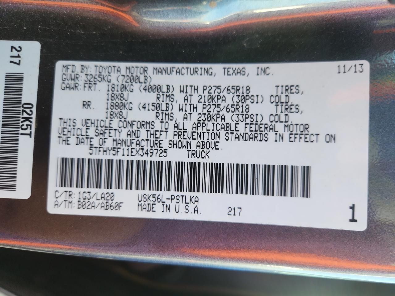 • Investigación del Código VIN: Usa el número VIN para descubrir el historial de este 2014 Toyota Tundra Crewmax Limited.