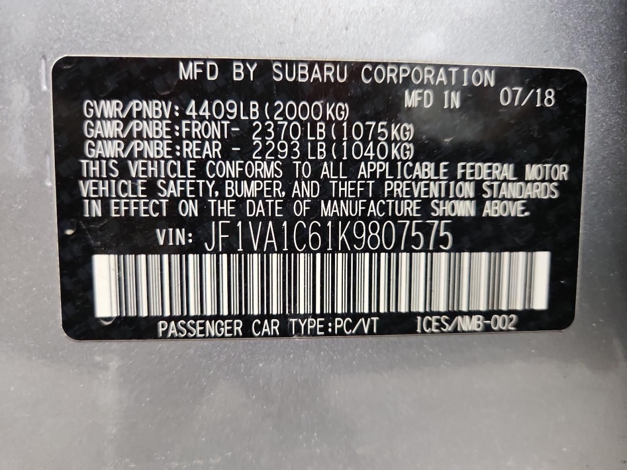 Mas sobre este 2019 Subaru WRX Premium, Lot #86305065