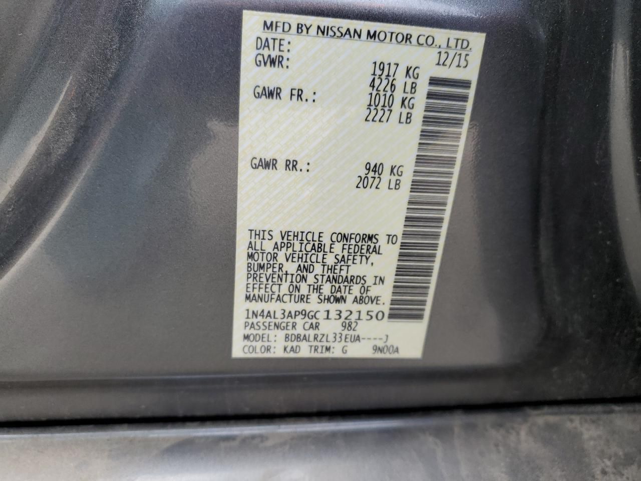 Mas sobre este 2016 Niss AN Altima 2.5, Lot #86514285